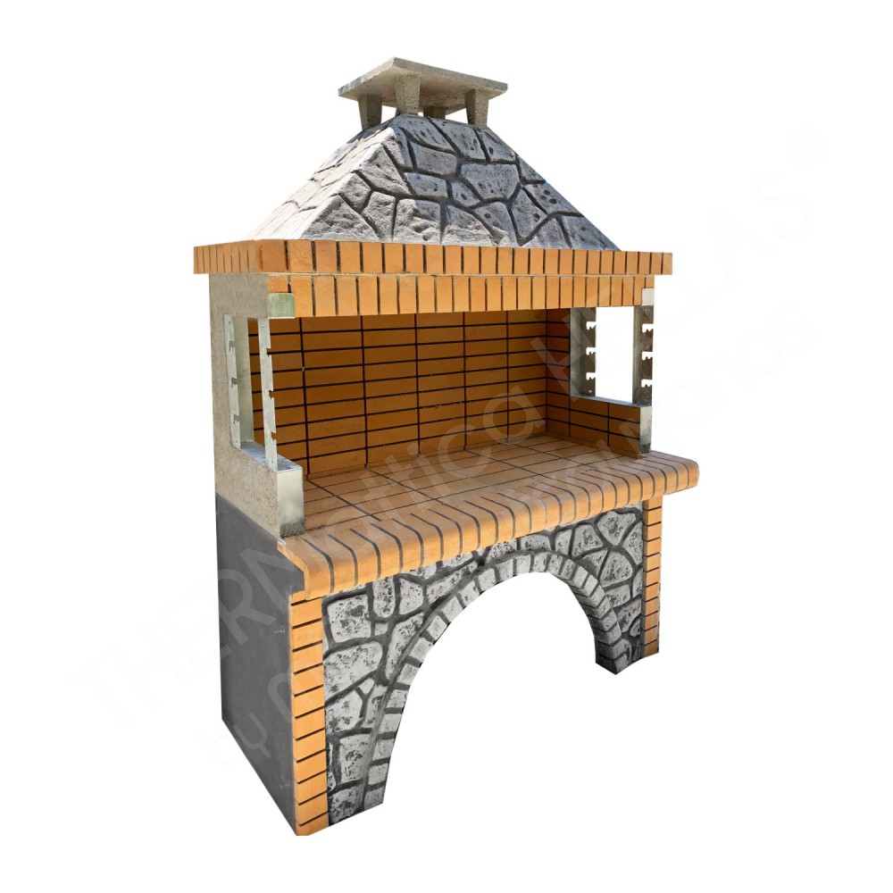 - Στη ψησταριά συμπεριλαμβάνονται τα μεταλλικά πλαίσια των δύο πλευρών της και καπέλο τσιμεντένιο για την καμινάδα.