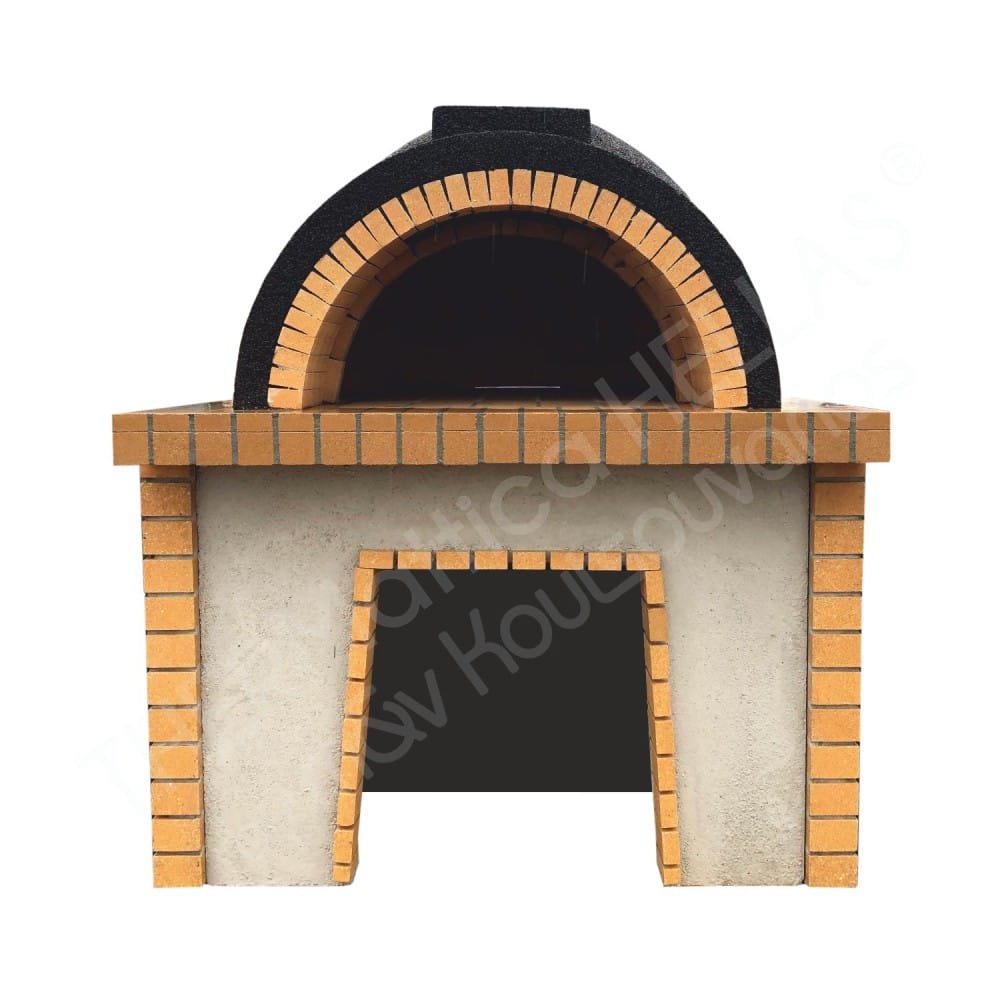 Παραδοσιακός Ξυλόφουρνος Μεγάλος, με θόλο, βάση, ξυλαποθήκη και ίσιο πυρότουβλο